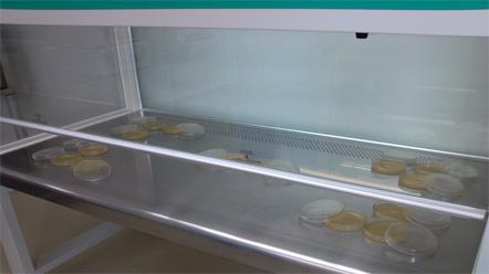 將裝有營(yíng)養(yǎng)瓊脂的j90mm培養(yǎng)皿置于工作臺(tái)操作界面上,測(cè)量點(diǎn)按懸浮粒子布置,暴露0.5h后,蓋上皿蓋,取出培養(yǎng)皿在30℃~35℃的環(huán)境中培養(yǎng)48h。用肉眼計(jì)數(shù)可見(jiàn)的細(xì)菌集落,取其算術(shù)平均數(shù)。