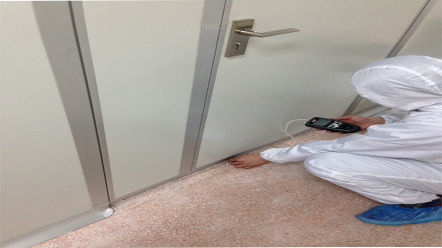 在實(shí)驗(yàn)工作區(qū)或動(dòng)物飼育區(qū)內(nèi),選擇有代表性測(cè)點(diǎn)的氣流上風(fēng)向進(jìn)行檢測(cè),檢測(cè)方法和操作與靜態(tài)檢測(cè)相同。