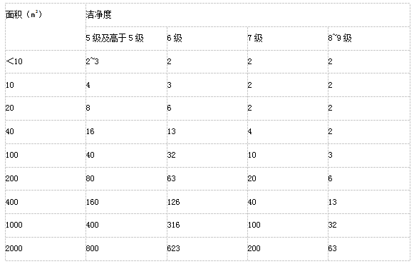 A————被測對象的面積(m2);對于非單向流潔凈室,指房間面積;對于單向流潔凈室,指垂直于氣流的房間截面積;對于局部單向流潔凈區(qū),指送風(fēng)面積。