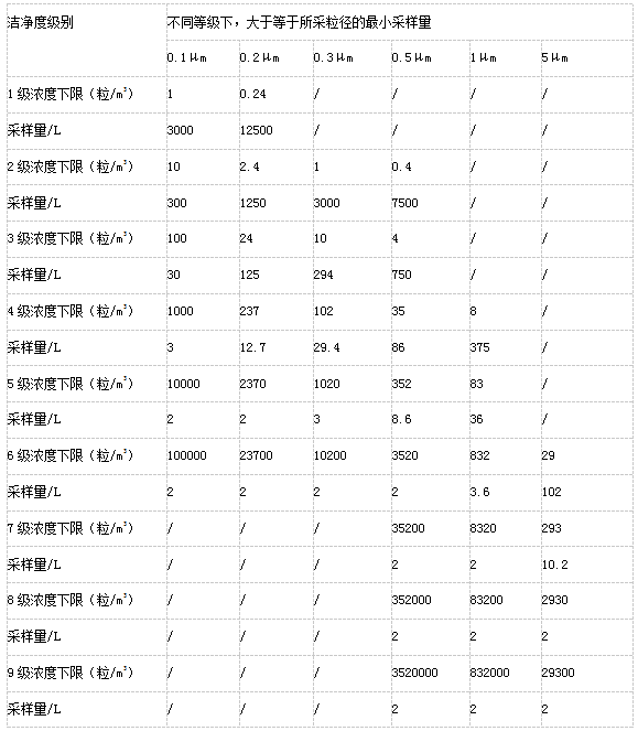 2采樣點(diǎn)數(shù)應(yīng)不少于微粒計(jì)數(shù)濃度測點(diǎn)數(shù)。